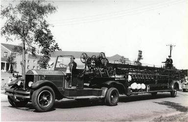 THROUGH THOUSANDS OF BRUSH FIRES, BURNING BARNS, DANGEROUS CONFLAGRATIONS IN AUTOMOBILES, CHEMICAL PLANTS, AND COMMERCIAL BUILDINGS, RUTHERFORD'S FIRE DEPARTMENT HAS BEEN ON THE JOB STEADILY. THE DEPARTMENT HAS ANSWERED EVERY CALL, AND TRUCK COMPANY NUMBER ONE HAS ALWAYS BEEN IN THE FOREGROUND