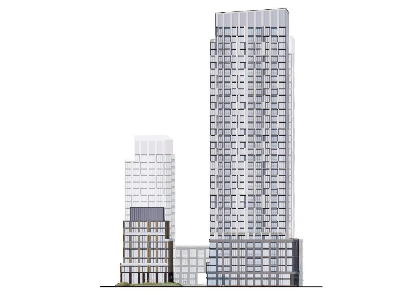 The proposed building features a dynamic and playful architectural design. The tower will be visually distinguished into four distinct stacked volumes above the ground floor, with stepbacks incorporated at various levels to articulate the tower as it rises. Further articulation is achieved through a pattern of balconies which creates an visually interesting exterior facade.