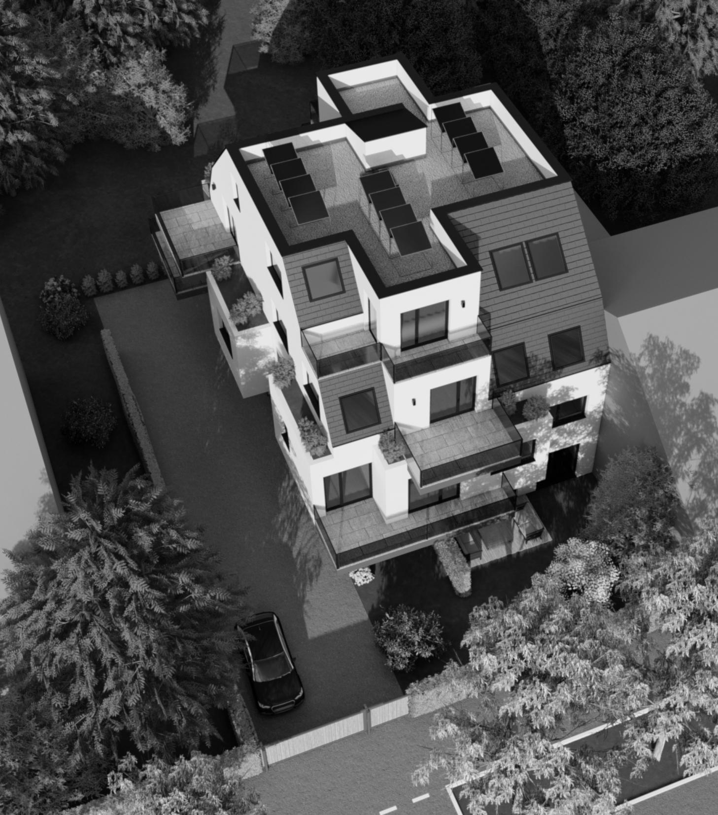 Neubau eines Wohnhauses mit 10 Wohneinheiten. Das Gebaude ist Vollunterekellerte und verfugt uber vier Obergeschosse. Die Raumaufteilung ist funktional, kombiniert mit einer qualitaitiven Ausstattung.