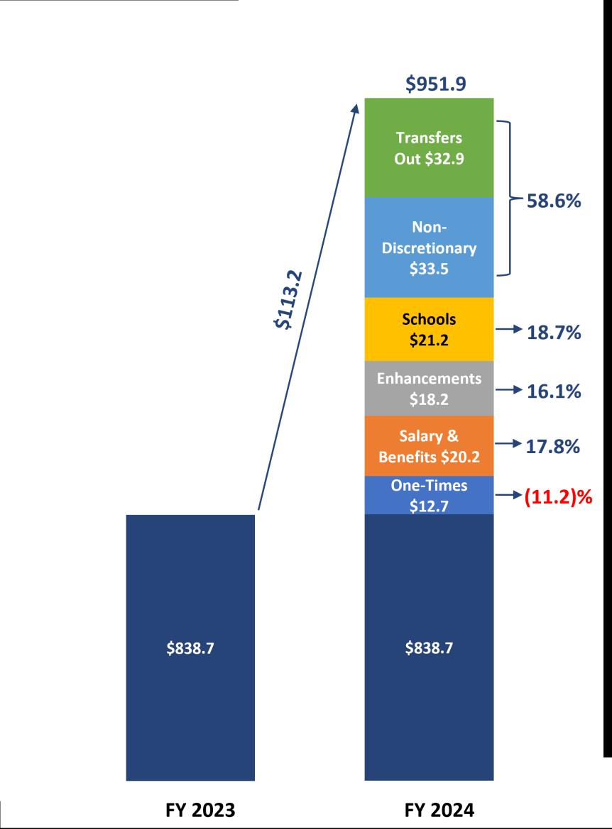 Budget breakdown: The total Adopted FY 2024 Budget is $3.0 billion, of which $951.9 million is General Fund: