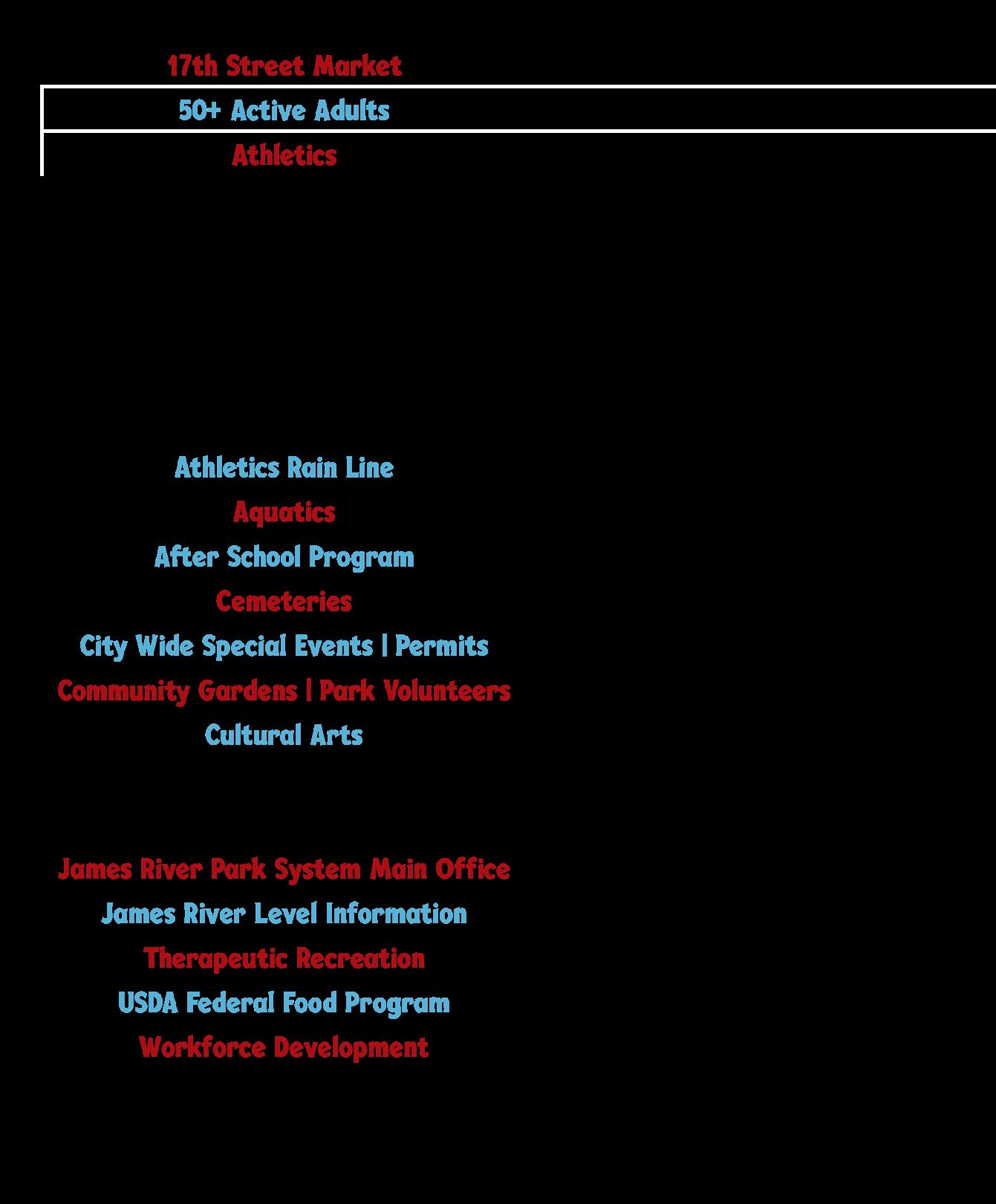 General Questions, Online Registration Questions, or Comments 804-646-5733 AskParkRec@rva.gov Who Do I Contact For...?