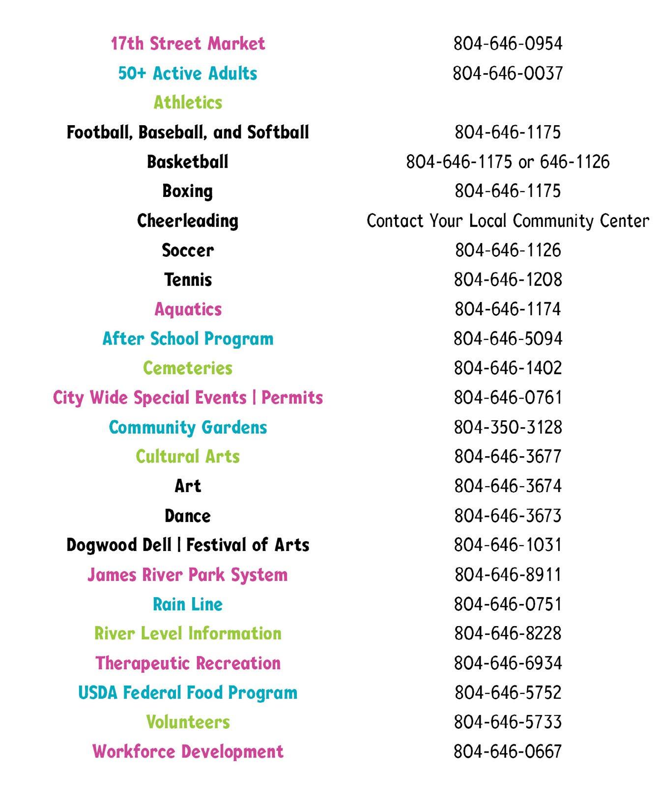 1209 Admiral Street • Richmond, VA 23220 • 804-646-5733 • www.rva.gov/parks-recreation