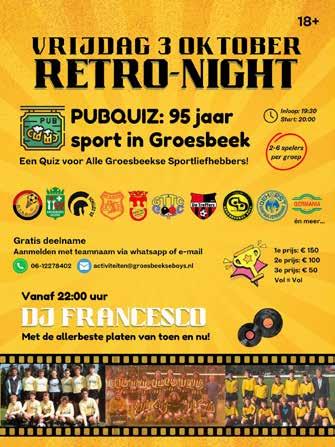 Het is weer zover, Groesbeeks Glorie organiseert een herfstloterij. Vanaf half september worden de loten verkocht door onze leden en de trekking vindt plaats op 12 oktober in de kantine van sporthal Heuvelland. De uitslag is ook te zien op onze website www.groesbeeksglorie. nl en social media.