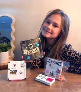 Wat zijn je hobby’s? Turnen, kickboksen, gamen en knutselen… En door dat laatste heb ik ook mijn eigen ‘Label Lenne’! wat inmiddels uitgroeit tot best wel een kleine onderneming. Ik ontwerp en maak tegeltjes, huisjes, spaarpotjes en nog veel meer met leuke teksten en plaatjes. Deze verkoop ik zelf op marktjes en op bestelling (studio@ labellenne.com) en in de winkel van een vriendin van mama.