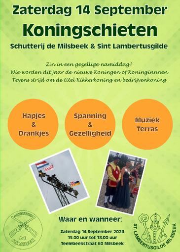 Van zaterdag 28 september tot en met dinsdag 1 oktober is het weer kermis in Milsbeek! Na een leuke en succesvolle editie van 2023 gaan we op dezelfde voet verder. Alle attracties van 2023 zullen ook dit jaar weer aanwezig zijn op het Schuttersplein. Daarnaast zullen we op zondag tussen 13.00-17.00 uur wat extra verrassende activiteiten organiseren, zodat ook deze editie weer onvergetelijk wordt. Ook krijgen alle (kermis) exploitanten wederom een ‘minimale’ financiële bijdrage voor hun bezoek aan Milsbeek.