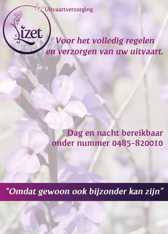 Frequentie, oplage en verspreiding 4 x per jaar. Oplage 13.500 exemplaren Verspreiding huis-aan-huis in Milsbeek, Gennep, Ottersum, Ven-Zelderheide, Heijen, Nieuw-Bergen, Bergen, Afferden, Siebengewald, Aijen, Well en Wellerlooi. Overige verspreiding via leestafels (gemeentehuizen, bibliotheken, VVV e.d.) en wachtkamers (huisartsen, tandartsen e.d.)