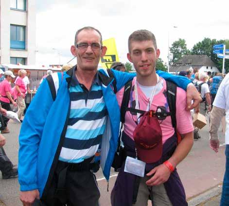 lopen terug naar Nijmegen, naar de Via Gladiola. Dan weet ik dat het goed komt en dat ik het ga halen. Elk jaar blijft dat een kippenvelmoment. De Vierdaagse is een fysieke en mentale uitdaging. Het lopen van de tocht is een unieke prestatie, los van leeftijden en afstanden. Of je nou dertien bent en de dertig loopt, of je bent een oudere routinier die de vijftig loopt: allebei zijn het fantastische prestaties waar ik mijn pet voor afneem. Te vaak hoor ik mensen zeggen, ‘och wandelen, zo moeilijk is dat niet’. Maar ga er maar eens aan staan. Niet voor niets wordt er gezegd dat de Vierdaagse normale mensen tot wereldkampioen maakt. Ik ken mensen die met deze mening de Vierdaagse zijn gaan lopen, en achteraf zeggen dat ze er te lichtvoetig over hebben gedacht.”