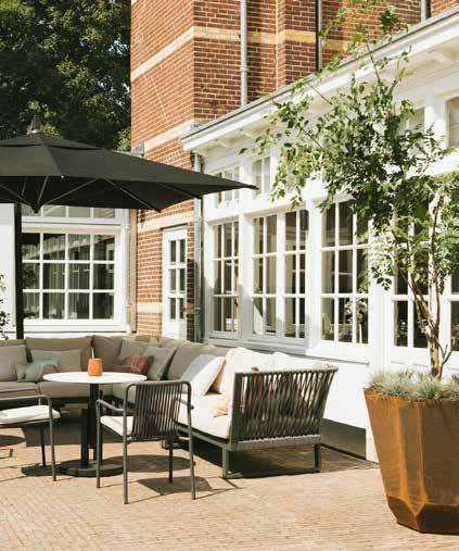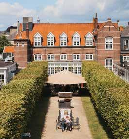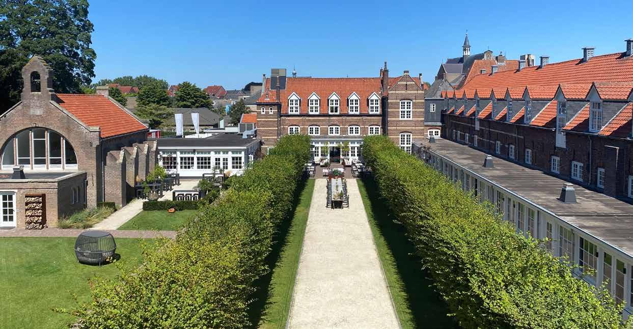 bijzondere kamers. “Elke kamer is ingericht door een andere Nederlandse interieurontwerper,” vertelt Aard. “Daardoor heeft iedere kamer een eigen uitstraling en stijl. Tegelijkertijd zie je in alle kamers de monumentale balken terug, wat zorgt voor een mooie combinatie van historie en modern design.” De hotelkamers zijn bovendien meer dan alleen een plek om te slapen. “We noemen het ook wel experience rooms. In de kamers zijn producten van onze partners verwerkt, zodat gasten die echt kunnen ervaren. Dat kan bijvoorbeeld inspiratie geven voor een eigen interieurproject.”