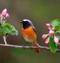 De gekraagde roodstaart is een echte vogel die vanaf april in de tuin kan arriveren en in september en oktober onze omgeving weer verlaat om te overwinteren in NoordAfrika. Het mannetje is een buitengewoon mooie vogel met een rode stuit, borst en staart. De keel en oorstreek zijn zwart en het voorhoofd wit. Het vrouwtje daarentegen is veel somberder van kleur. De gekraagde roodstaart is te herkennen aan zijn voortdurend trillende, roestbruine staart. Deze vogel bevindt zich het liefst in oude, parkachtige bossen met weinig ondergroei en open plekken met oude bomen, gras of heidelandschap. Deze vogels keren vaak plaatsgetrouw terug naar de broedplaats van het jaar ervoor. Ze nestelen zich in holen, nissen en nestkastjes, meestal slechts enkele meters boven de grond.