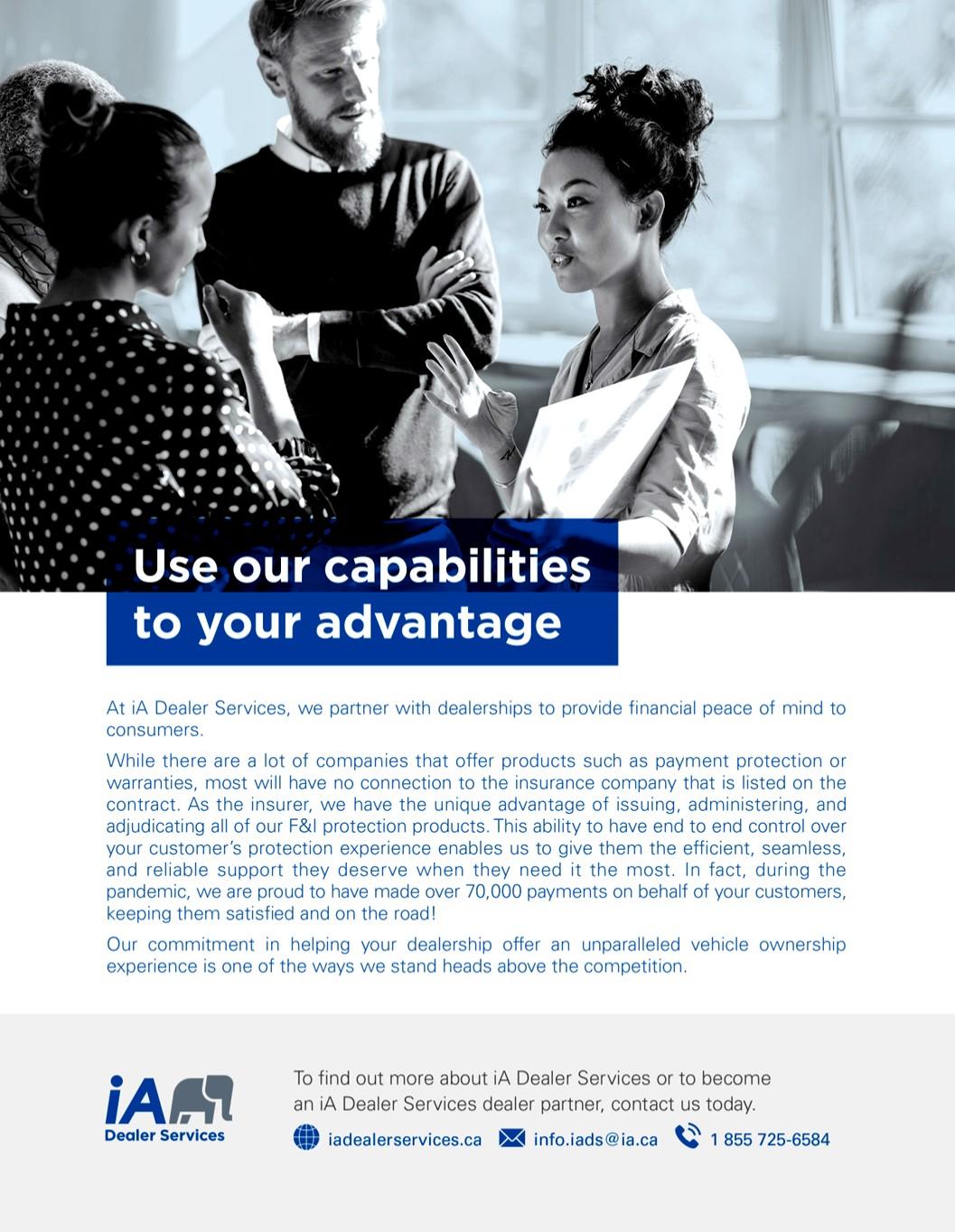 To find out more about iA Dealer Services or to become an iA Dealer Services dealer partner, contact us today. 1 855 725-6584 info.iads@ia.ca
