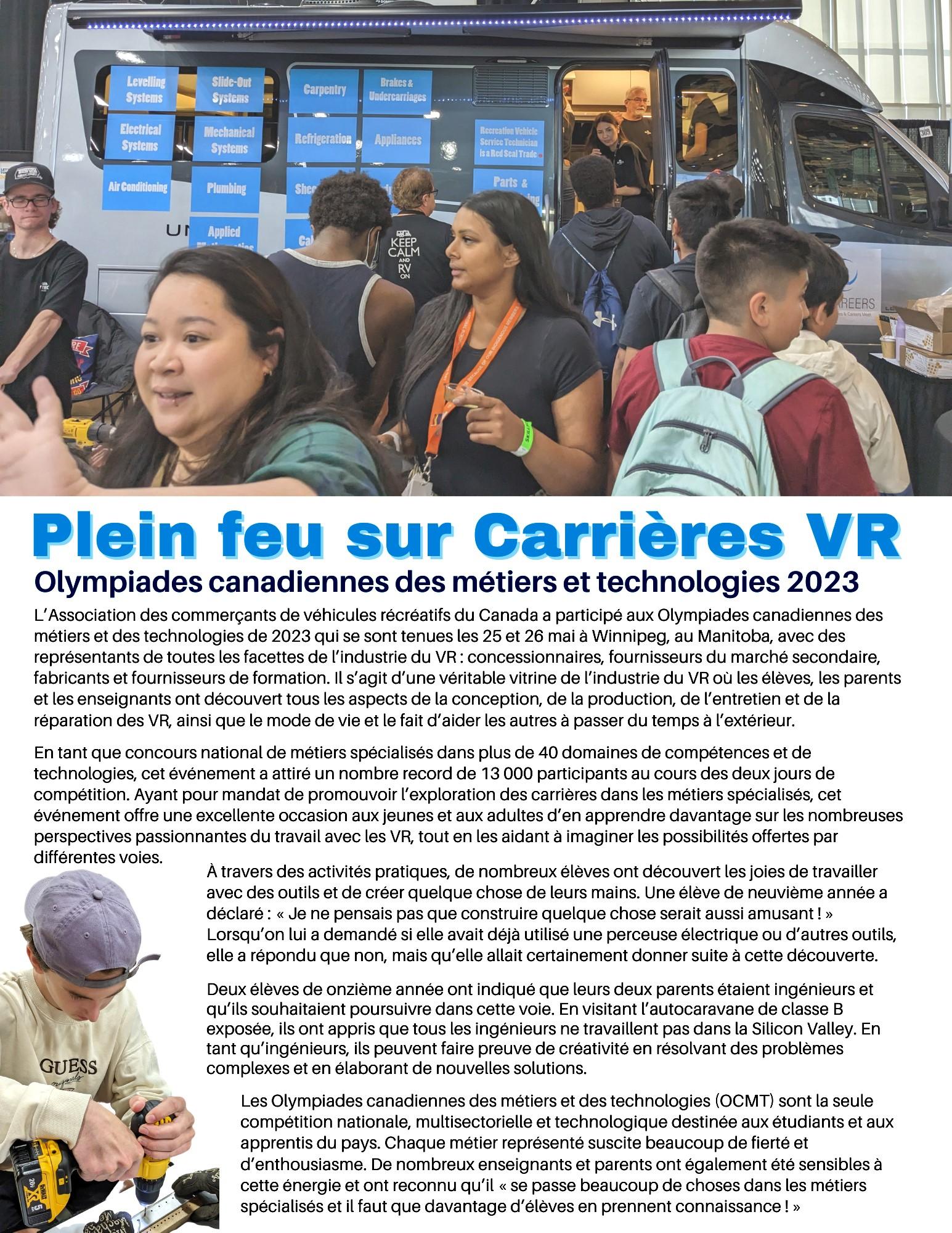 Dans ce numéro Plein feu sur carrières VROlympiades canadiennes des métiers et des technologies 2023