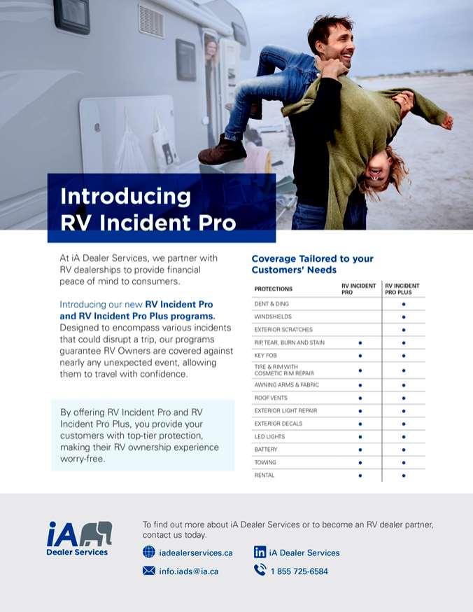 iA Dealer Services: F&I protection programs including, Creditor's Group Insurance (life, accident & sickness, involuntary unemployment, critical illness), Extended Warranty, Appearance Protection and Theft Deterrent System. An array of dynamic and RV specific F&I training webinars to support your business office. To find out more about iA Dealer Services or to become an iA Dealer Services dealer partner, contact us today.