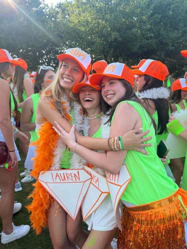 Big/Little: All new members of a sorority are matched with a “big sister” during the new member period, which takes place before initiation. The “big” acts as a mentor and friend to their “little.”