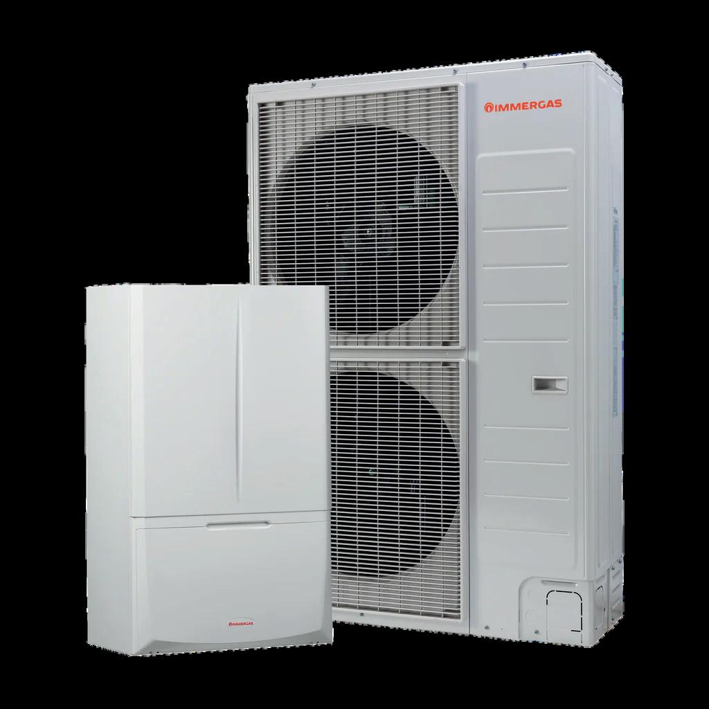 The Immergas Magis Pro V2 is a split type air to water heat pump, with a packaged indoor condensing/hydronic unit and highly compact outdoor unit.