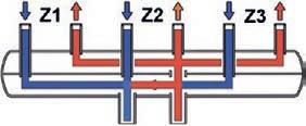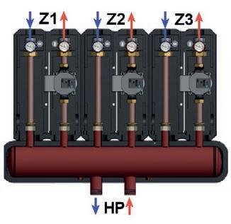 We recommend using a three way valve for hot water along with a DIASYS manifold for pumped heating zones. The DIASYS is a combination hydraulic separator and disribution manifold. A direct pump module is installed for each zone, comprising of pump, isolation valves and thermometers. A high quality EPP insulation shell is included (30kg/m3 density)