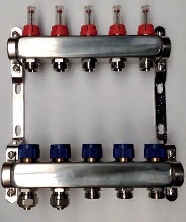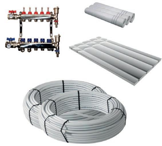 Each mat contains two sets of flow and return pipes operating in a counter-flow arrangement. As a result, it is necessary to bring the two sets of pipes back to the manifold for connection. The pipes use a Eurocone type push fit connector. Either two or four pipes may be joined using an adapter at each port on the manifold, allowing up to two mats to be used per port.