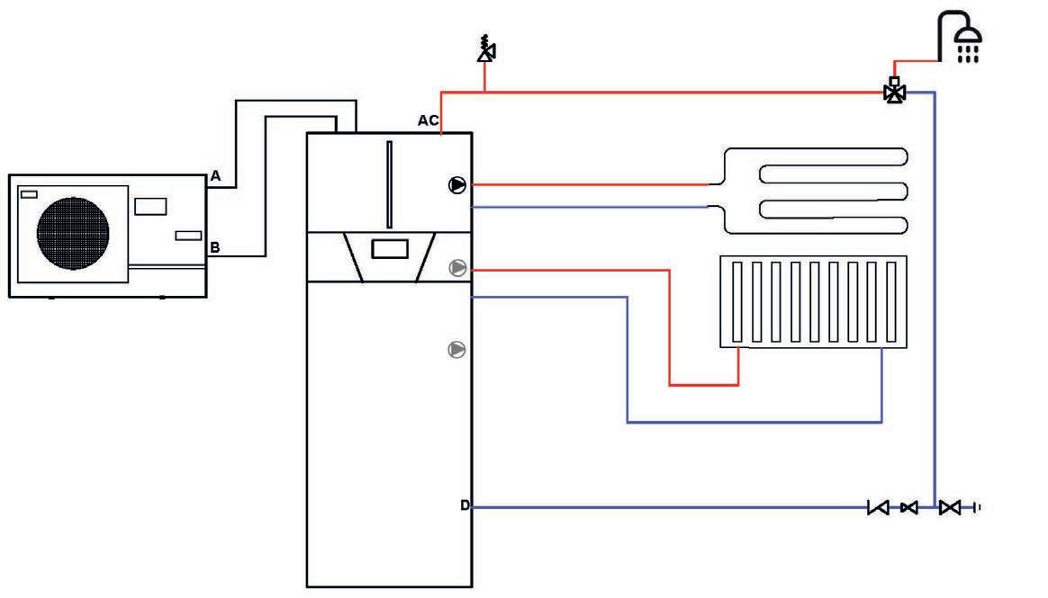 The existing hydraulic system must be checked (layout, flow-rate and volume (defrost)). Capacity of the heat emitters (radiators) and hot water cylinder must be checked to ensure they are suitable for use with a heat pump. The electrical supply must also be checked.