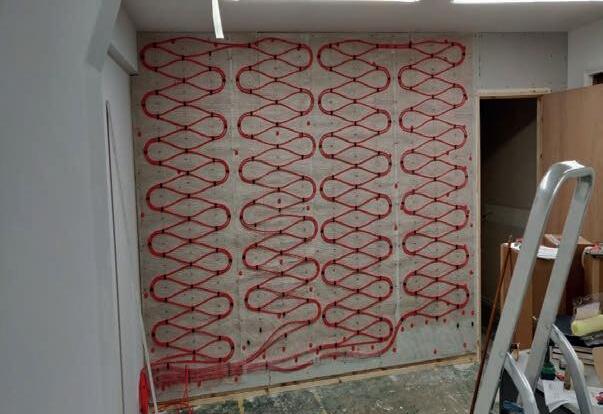 These 1m x 4.5m mats provide 80W of output per m2. The mesh (but not the pipes) may be cut at any point and the mats rotated to fit the wall space. Should a mat need to be shortened to fit the space, the mesh may simply be cut and removed.