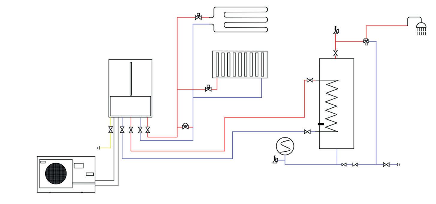 For new build homes and where possible during retro-fit, we recommend a three way valve for hot water priority along with a DIASYS header for pumped heating zones.