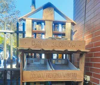 Regał, na którym można ustawiać słoiki lub je odbierać został zbu dowany z materiałów z odzysku. Źródło: UM Wejherowo