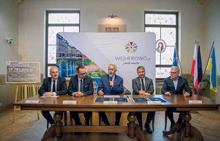 W podpisaniu umowy uczestniczyli zastępcy prezydenta Beata Rutkiewicz i Arkadiusz Kraszkiewicz, sekretarz miasta Bogusław Suwara oraz wej herowscy radni m.in.: Jacek Gafka, Leszek Szczypior, Piotr Bochiński, Henryk Jarosz, Tomir Ponka. Wyrazy uznania należą się zespołowi pracow ników Urzędu Miejskiego w Wejhero wie za zaangażowane i wysiłek włożony w przygotowywanie tej trudnej inwe stycji do realizacji.