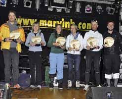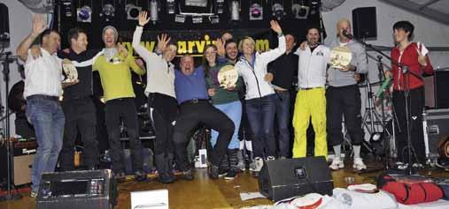 Die Tagessieger: die schnellsten Teilnehmer aller Disziplinen bei der Prämierung im Festzelt.