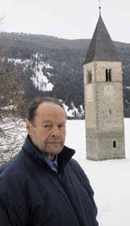 Der Kirchturm im Stausee ist in Graun im Vinschgau zum Wahrzeichen geworden. Die Wunden sind verheilt, die Erinnerung ist aber noch wach, auch bei Ferdinand Stecher, von 1957 bis 1996 Geschäftsführer der Raiffeisenkasse Graun.
