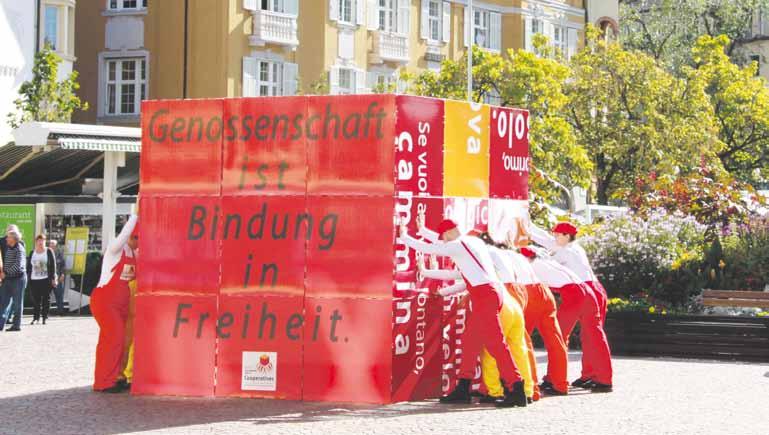 Die Vereinten Nationen haben das Jahr 2012 zum Internationalen Jahr der Genossenschaften erklärt. Zu diesem Anlass organisierten Südtirols Genossenschaftsverbände Raiffeisenverband, Legacoopbund, Confcooperative und Associazione Generale delle Cooperative Italiane (A.G.C.I.) an der Freien Universität Bozen eine Veranstaltung, die sich an die studentische Jugend richtete. Nachdem eine Performance-Gruppe am Waltherplatz aufgetreten war, unterstrich Andrea Zeppa, Direktor der Landesabteilung für Genossenschaften, den sozialen Stellenwert. „Eine Genossenschaft stellt den Menschen in den Vordergrund. Sie