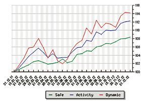 Den Vermögensverwaltern des Raiffeisen Pensionsfonds ist es im abgelaufenen Jahr gelungen, eine sehr gute Performance bei allen drei linien zu erzielen. Bei der Anleihen-linie Safe gab es ein Plus von 8,32 %, bei der Activity-linie, deren Aktienquote bei 25 % liegt, ein Plus von 12,20 % und bei der Dynamic-linie, deren Aktienquote bei 65 % liegt, ein sattes Plus von 14,11 %.
