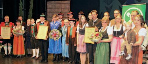 Die heurigen Preisträger-Familien auf der Bühne des Waltherhauses im Rahmen der Vollversammlung des Bauernbundes.