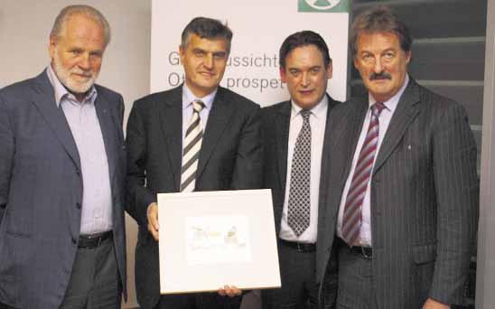 des RVS eine Karikatur von Pepi Tischler als Geschenk. Letzterer ist seit Jahren treues Mitglied der Raiffeisenkasse Meran. Der Raiffeisen Karikaturkalender ist ein Geschenk der Raiffeisenkassen Südtirols an Mitglieder und Kunden und erfreut sich großer Beliebtheit.