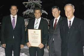 Direktor Reinhard Kofler, Richard Moser, Verbandsobmann Heiner Nicolussi-Leck , Obmann Raiffeisenkasse Sarntal Florian Murr