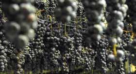 Luftgetrocknete Trauben aus denen der Rosenmuskateller „Rosatum“ gepresst wird.