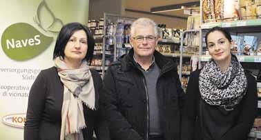 Die Nahversorgungsgenossenschaft wurde in Vahrn mit dem Ziel gegründet, den Erhalt der Nahversorgung in den Dörfern vor Ort zu sichern. Deshalb will sie ihre Aktivitäten auf ganz Südtirol ausdehnen und dort aktiv werden, wo die Nahversorgung zusammenzubrechen droht. Im vergangenen Jahr wurden neben Pichl/Gsies und Vahrn zwei weitere Filialen eröffnet: im April ein Geschäft in Toblach, im November eines in Niederolang. „Es ist nicht einfach, denn wir wollen ja keine Konkurrenz zu bestehenden Geschäften bilden“, sagt Obmann Raimund Ochsenreiter. Trotz der schwierigen Rahmenbedingungen kann aber die NaveS auf ein gutes Jahr 2013 zurückblicken: „Wir können ein Plus von zwölf Prozent verzeichnen und haben durch die Erweiterung des Filialnetzes unseren Umsatz verdoppeln können“, sagt Kathi Unterleitner, die zusammen mit ihrer Tochter Miriam das Konsumgeschäft in Vahrn bei Brixen führt. Besonders gefragt sind einheimische Produkte, aber auch Frischware wie Käse und Wurst-