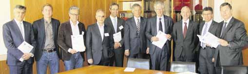 Die Führungsspitze des Raiffeisenverbandes der Landesbank zusammen mit den Leitern der Studie von der Europäischen Akademie nach der Präsentation im Raiffeisenhaus.