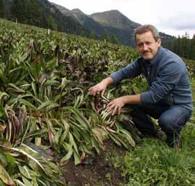 Hubert Ungerer, Geschäftsführer der Deutschnonsberger und Ultentaler Erzeugergenossenschaft, auf dem Radicchiofeld des Untergampenhofes in Proveis