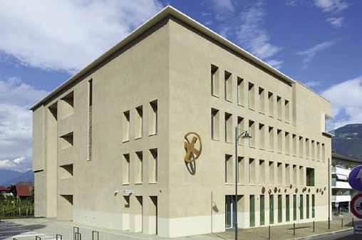 onsschalter und Beratungsbüros, ein Privatund Firmenkundencenter, einen Versammlungssaal und in der Tiefgarage 70 Parkplätze, die auch für kurze Besorgungen im Dorf genutzt werden können. Dezent zeigt sich die künstlerische Gestaltung durch Künstler Manfred Alois Mayr zum Thema „Geld“.