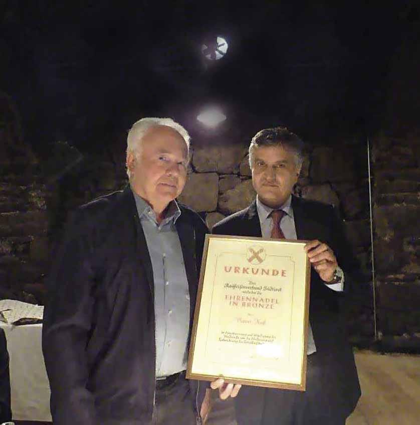 Bei der Vollversammlung der Kellerei Algund Ende April in Meran wurde Obmann Karl Prunner mit der Raiffeisen-Ehrennadel in Bronze ausgezeichnet.
