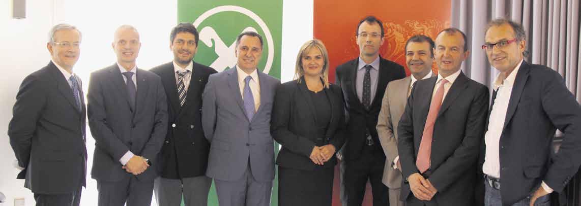 Paul Gasser, Heiner Nicolussi-Leck, Maurizio Gardini und Assimoco-Vertreter im Präsentationsraum der Abgeordnetenkammer