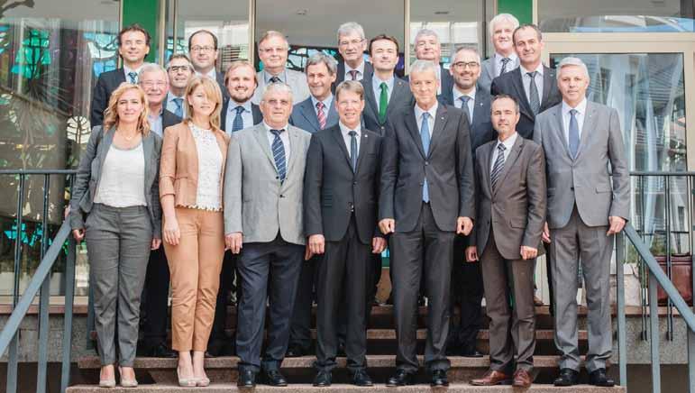 Der neue Obmann Herbert von Leon (3. v. r.) mit dem neuen Vollzugsausschuss und der Verbandsleitung
