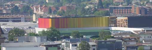 Siegerentwurf des Büros „Kerschbaumer Pichler & Partner Architekten“ ist zu Teilen angebracht. Die in Rot-, Gelb-, Orange- und Grüntönen gehaltenen Alu-Tafeln sollen zusammen mit der lichtdurchlässigen Außenverkleidung eine Kulturlandschaft darstellen. Die bunten Flächen sorgen für die markante „LeuchtturmFunktion“ im Brixner Talkessel. Zusammen mit der Holzkonstruktion der Brixner Firma LignoAlp belaufen sich die Gesamtkosten in-