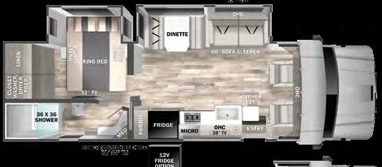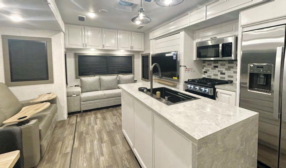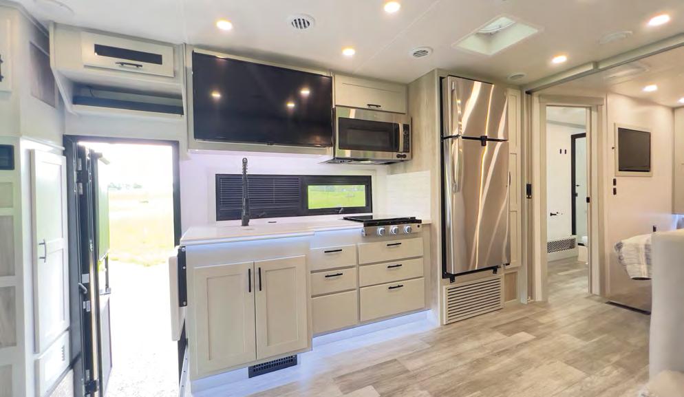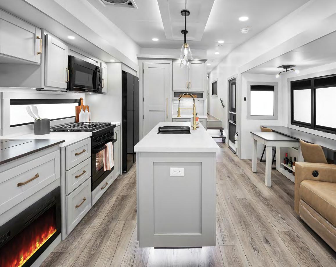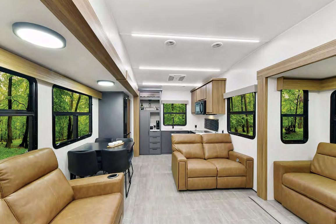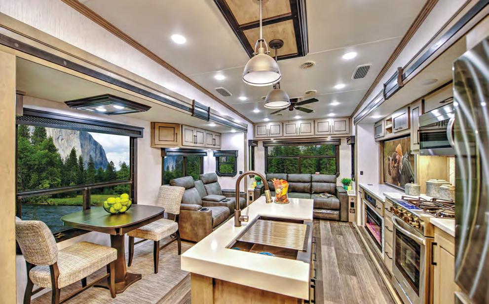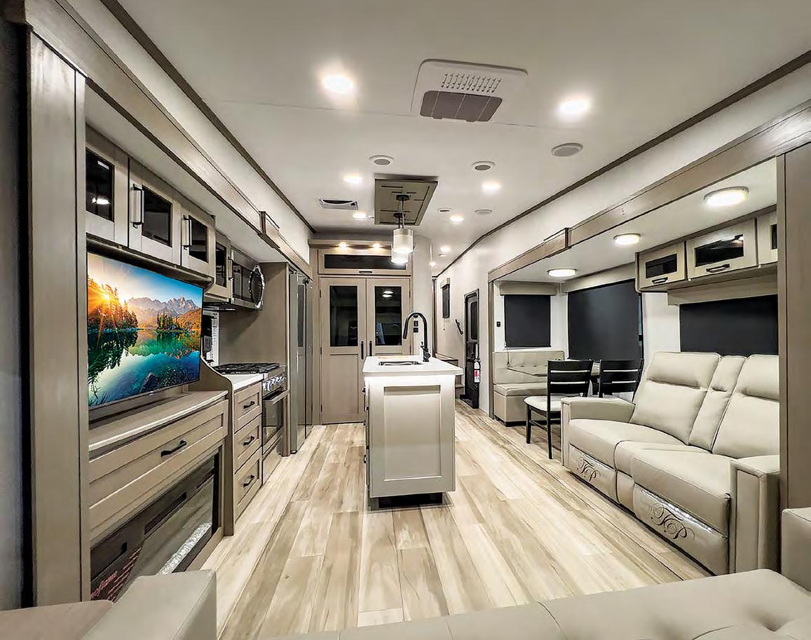NEXUS RV IS INTRODUCING AN ALL-NEW SUPER C LINE CALLED THE MAXIMUS —it feels like a Class A, but with more driving ease and comfort. The line is built exclusively on the Ford F-650 chassis, which offers 20,000 pounds of towing power, and powered by a 6.7L Power Stroke diesel engine with 850 poundfeet of torque. The MAXIMUS also features air ride seats, upgrad ed suspension, four interior decor choices, and four full-body paint schemes with three-color designs—all at a competitive price point. For more infor mation, visit rvtoday. com/maximus