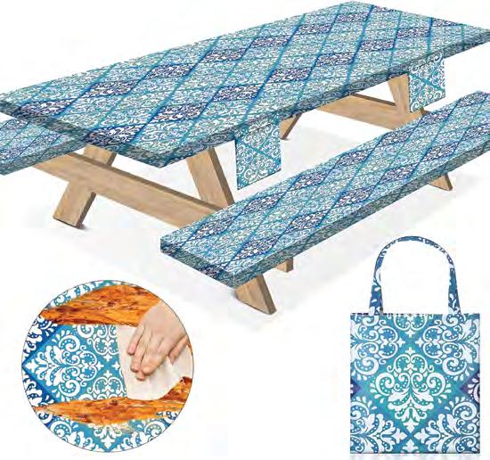 This three-piece picnic tablecloth set includes a waterproof, elastic-edge table cover, two bench covers, and a portable carry bag. It’s perfect for keeping things clean at your campsite and offers easy cleaning, built-in storage pockets, and stylish designs.