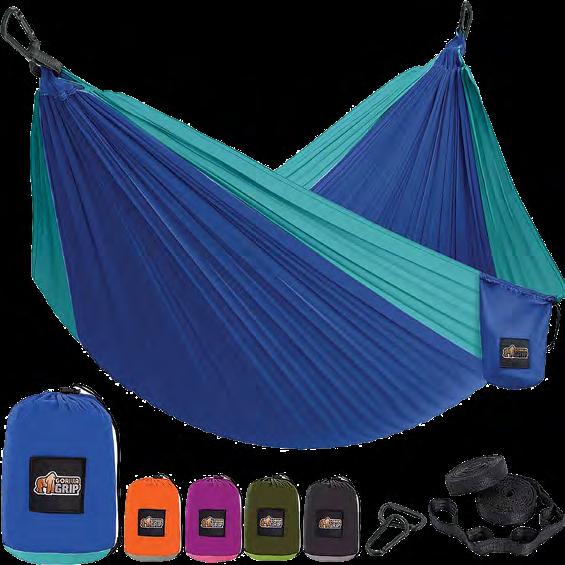 This heavy-duty, breathable nylon hammock holds up to 500 pounds, includes adjustable 10-foot tree-friendly straps with steel carabiners, folds into a compact pocket for easy transport, and sets up in minutes for comfortable adventures anywhere.