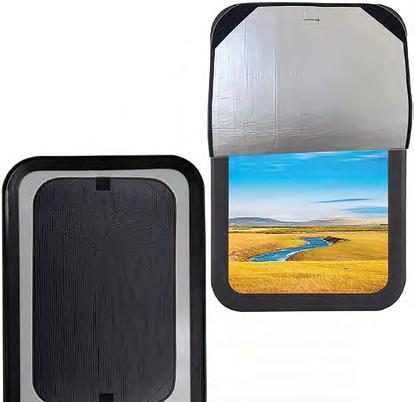 This window shade features a three-layer design for sun, heat, and privacy protection, a convenient flip-up design for easy adjustment, and a no-drill Velcro installation. It will help keep your RV cool during warm summer days.