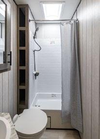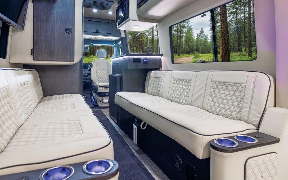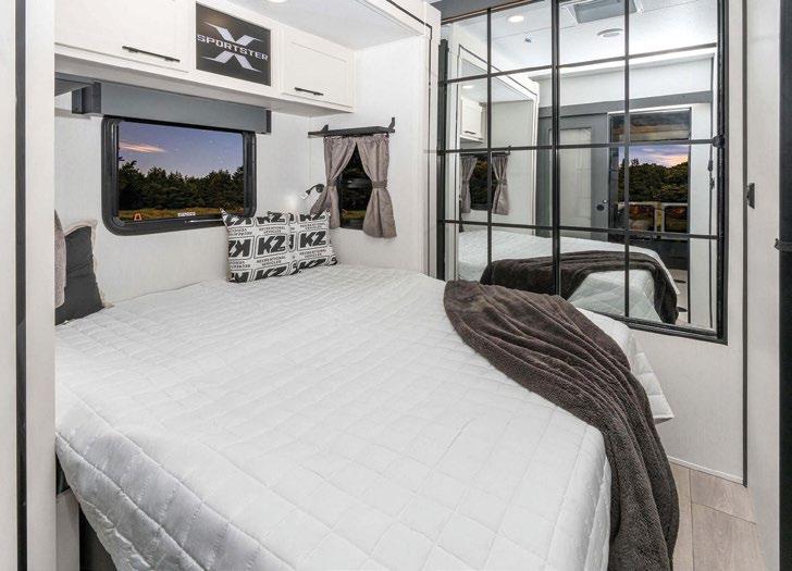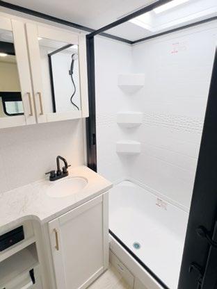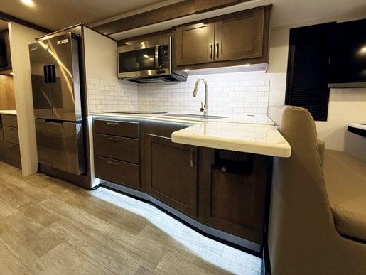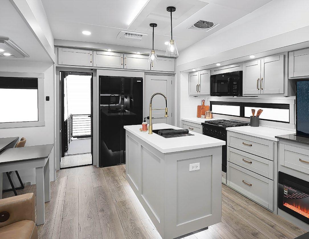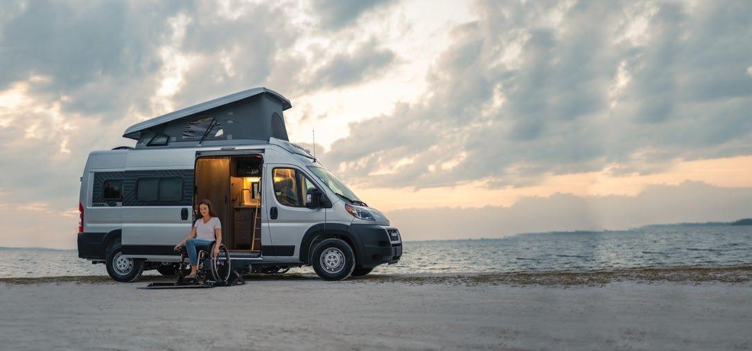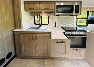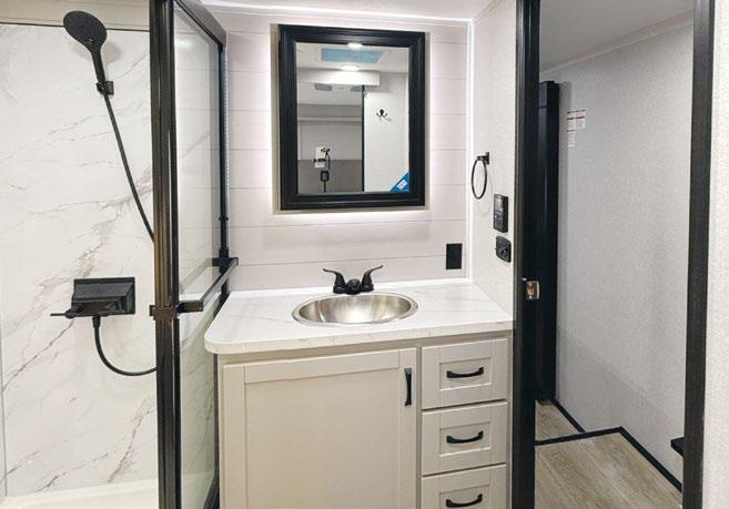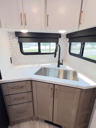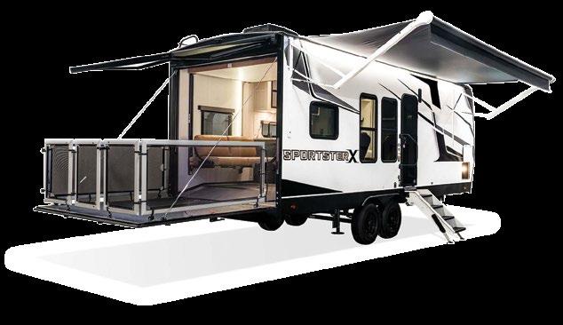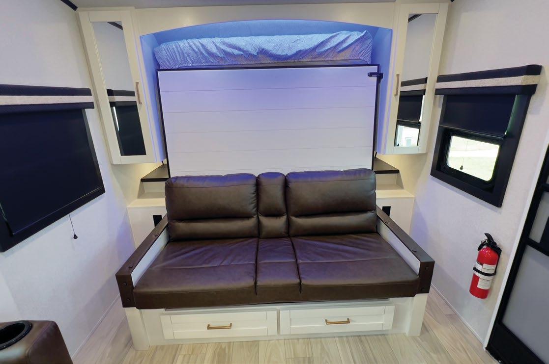 THIS MICRO TRAILER FROM EMBER RV PACKS A BIG PUNCH, with all the basics you need to get out and go. The pull-out kitchen lets you cook outside, and two can sleep comfortably inside—plus, a rooftop tent can add more sleeping space. At a dry weight of just 1,830 pounds, it’s towable with almost any vehicle. For more information, visit rvtoday.com/12FK