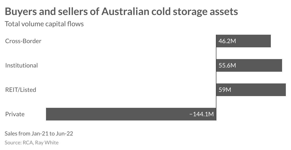Refrigerated facilities that cater to food and beverage production, along with refrigerated warehouse and distribution facilities in Australia attracted several new players over the past five years, notably international companies with strong track records in their own respective countries. Since this time, we saw ongoing interest from these offshore buyers and domestic institutional investors fuelling competition for this bespoke asset type. Looking at sales over the past 18 months, the continued decline in owner-occupiers is clear, representing more seller activity while a combination of cross-border, institutional and REITs as net buyers seek to capitalise on high user demand, low vacancy and rising rental rates in the current high inflationary market.