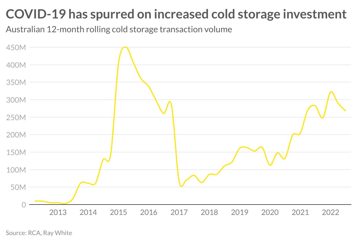 THE COLD STORAGE ASSET CLASS HAS GONE THROUGH A FEW PERIODS OF CHANGE OVER THE LAST TEN YEARS. THE EVOLUTION OF THIS INDUSTRIAL ASSET CLASS HAS SEEN INVESTMENT DEMAND INCREASE MORE RECENTLY, NOTABLY FROM OFFSHORE AND INSTITUTIONAL GROUPS. POPULARITY IN THE ASSET WAS REIGNITED AGAIN DURING THE PANDEMIC PERIOD WITH EXPANDED USE INTO HEALTH SCIENCES, AS THE NEED TO MANUFACTURE, STORE AND TRANSPORT VARIOUS MEDICAL GRADE PRODUCTS GREW. THIS NARROW SUBSET OF AN ALREADY LUCRATIVE INDUSTRIAL ASSET SAW DEMAND TO PURCHASE INCREASE, RESULTING IN STRONG COMPRESSION OF YIELDS LAST YEAR, ALBEIT INTO 2022 THIS HAS MODERATED.