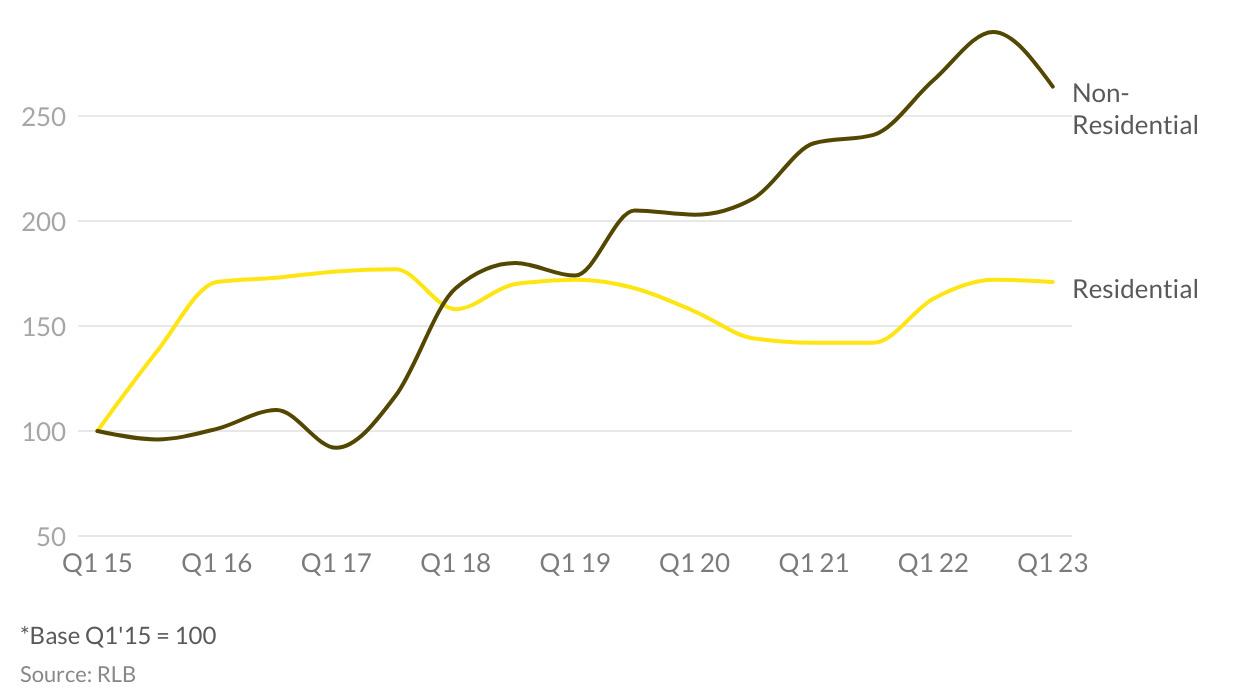 While annually there has only been a net loss of two cranes across Australia, over the last six months this grew to a -29 net change in non-residential cranes on our skyline. Given the strong approval pipeline, these results could again rebound, however high construction and financing costs may continue to dampen activity, particularly for those sectors such as office and retail, which have had reduced demand levels.