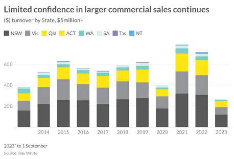 the highs of 2022. 2020 was a historically low volume year across the larger end of the market with $40.2 billion in sales recorded - below the ten year average $57.3billion per annum. As the first eight months of 2023 has achieved $27.1 billion, volumes are on track to exceed this low 2020 period, albeit not pull ahead of the longer term average.